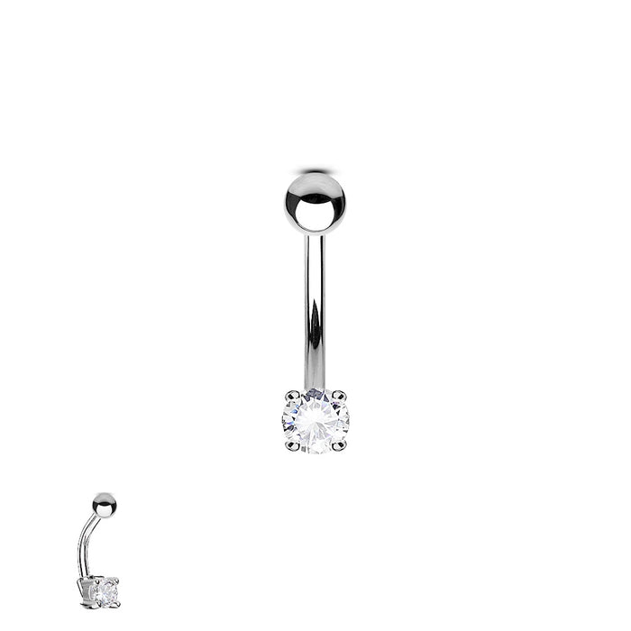 Piercing de barra curva de circonita color plata - Acero quirúrgico