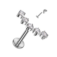 Piercing para labio con forma de arco, color plata, 5 circonitas - Titanio