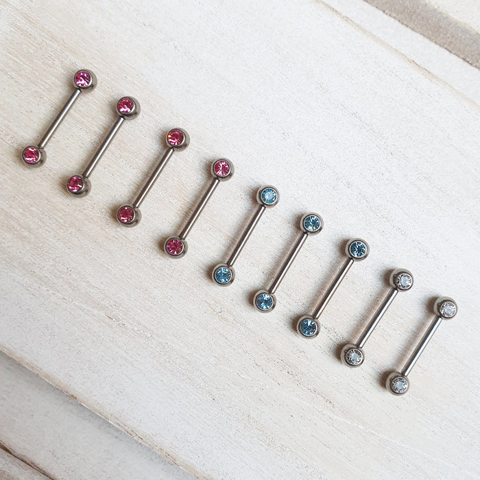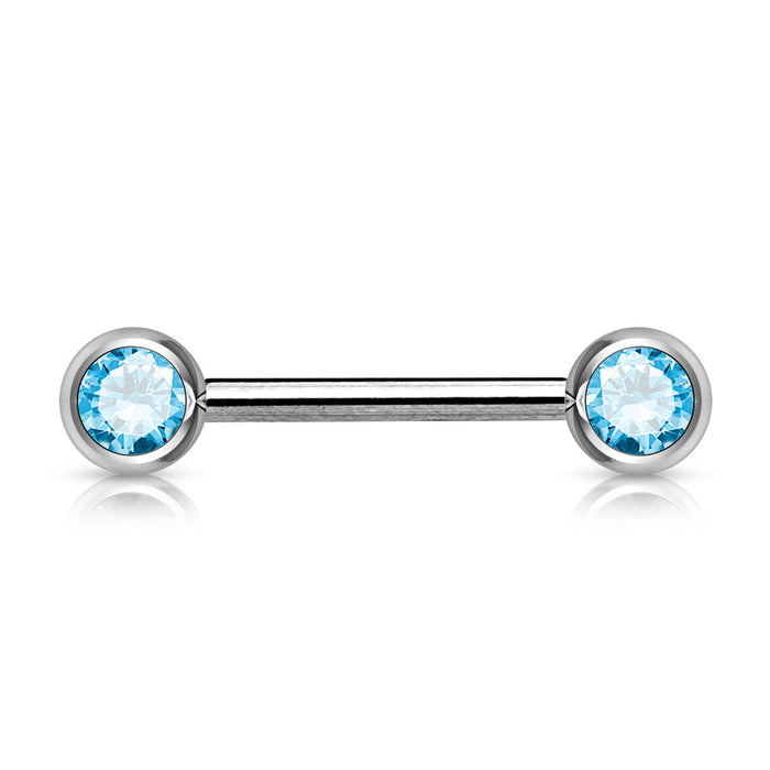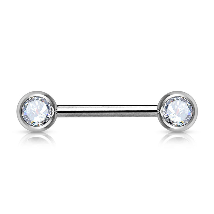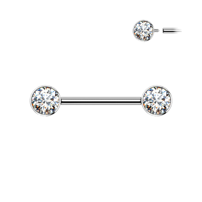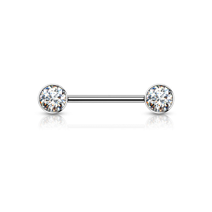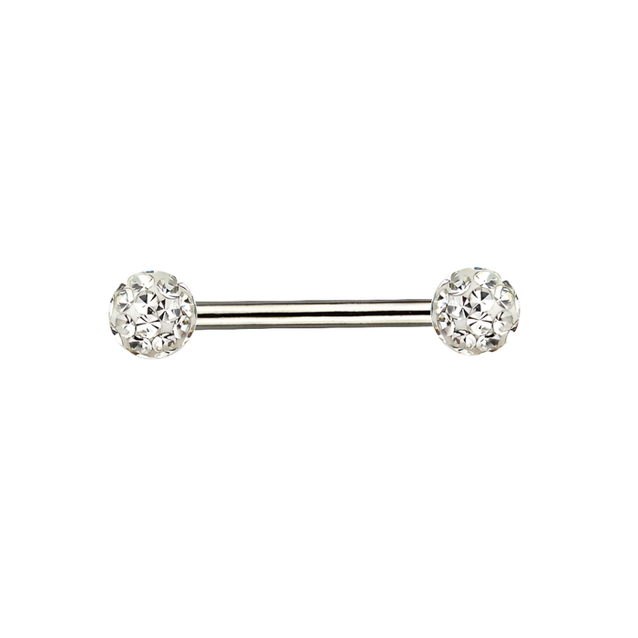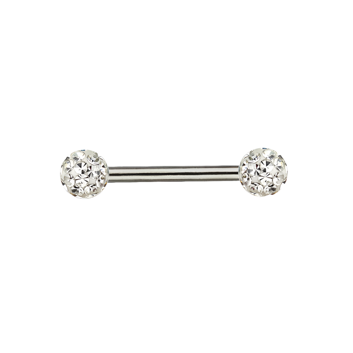 Piercing para pezón con barra y cristales plateados - Acero quirúrgico