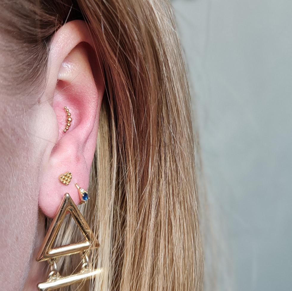 Grosor de la piel o el cartílago: El grosor de la piel o el cartílago que rodea la perforación (frontal, lateral o trasera) influye en la elección de la joya. Tenga en cuenta la sensibilidad del cartílago en ciertas perforaciones.