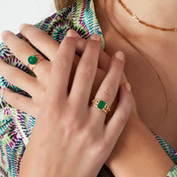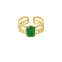 Anillo Cadena Doble con Piedra Verde - Talla Única