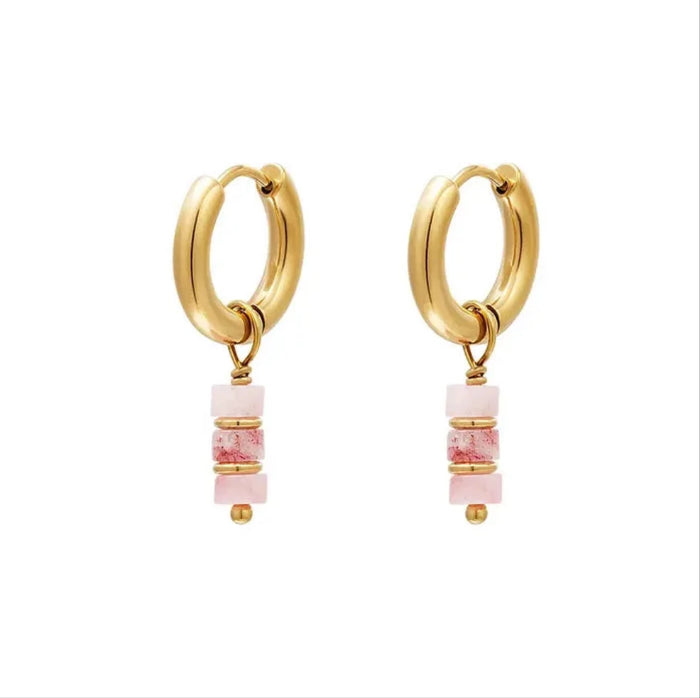 Pendientes Clásicos Piedra Natural Rosa Claro