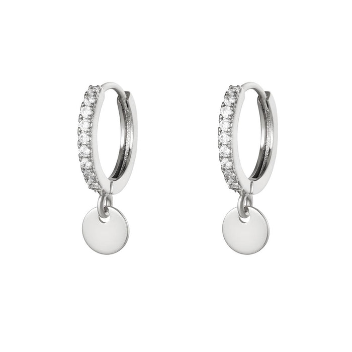 Pendientes de moneda de circonita color plata