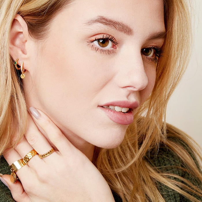 Pendientes de moneda de circonita color dorado