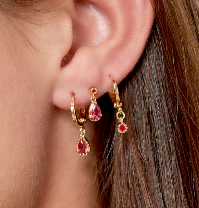 Pendientes Colgante Piedra Rosa Brillante