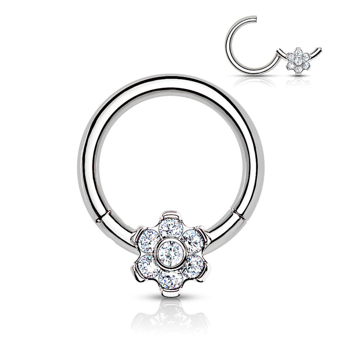 Anillo de clic de titanio con circonita y flor