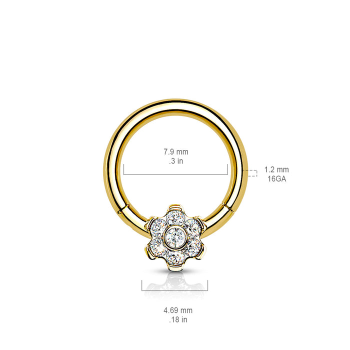 Anillo Click Titanio Zirconia Flor Color Oro