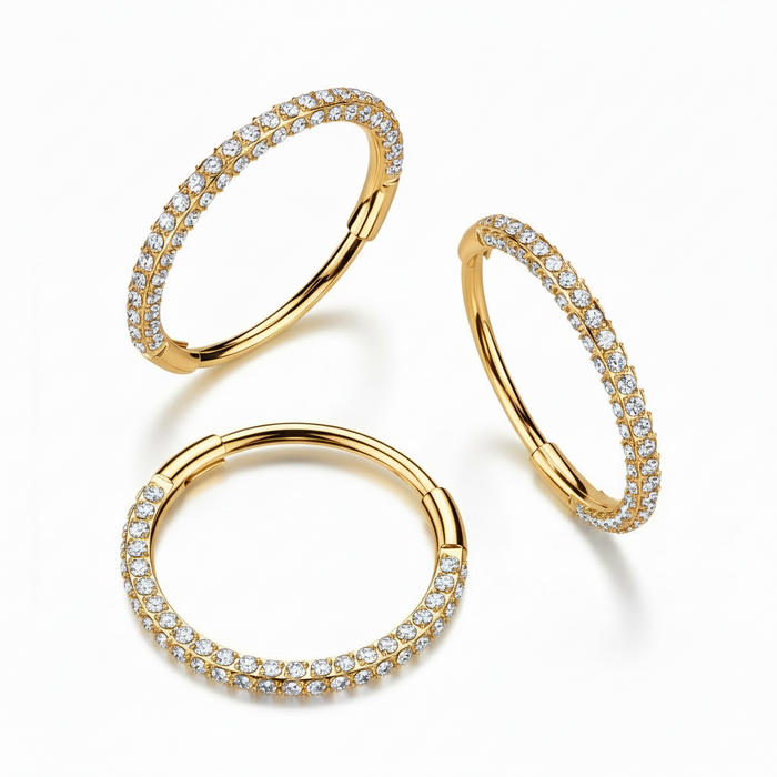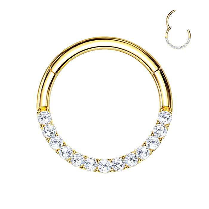 Anillo de clic dorado con circonitas pequeñas - acero quirúrgico