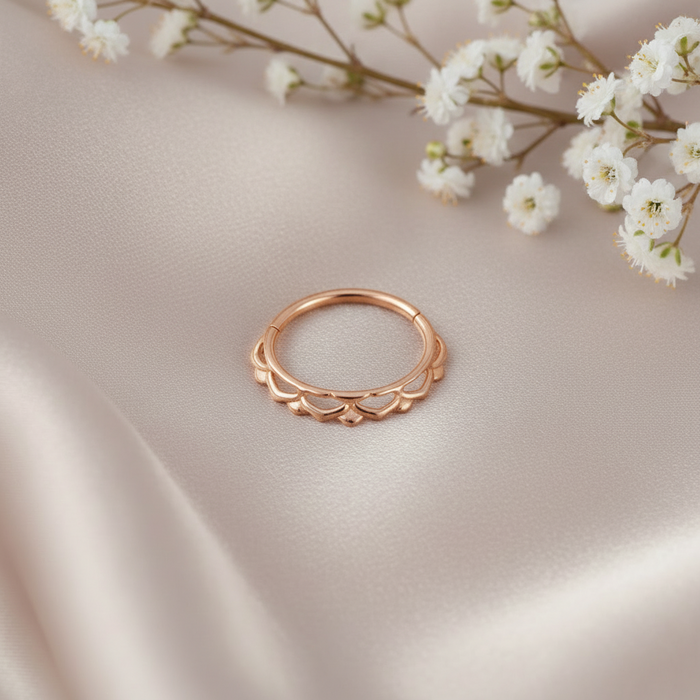 Anillo de clic con rosa acanalada - Acero quirúrgico