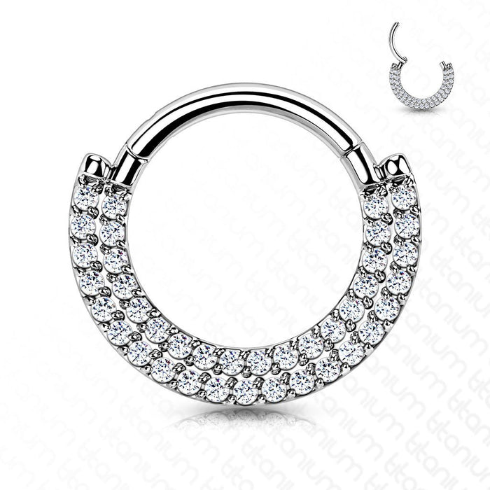 Piercing Click Ring Doble Zirconia - Titanio