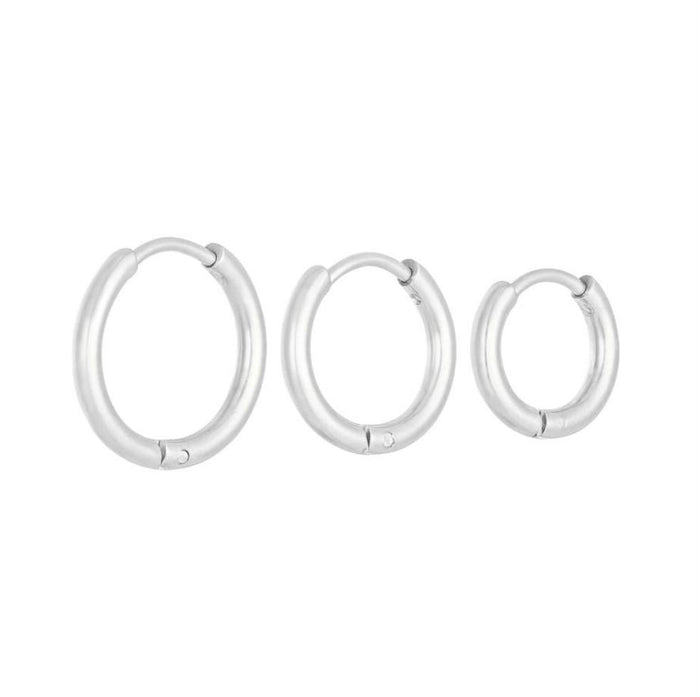 Juego de 3 pendientes de aro criollos color plata - Acero inoxidable