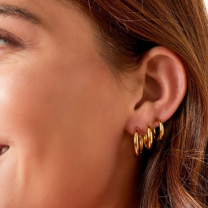 Juego de 3 pendientes de aro criollo dorados - Acero inoxidable