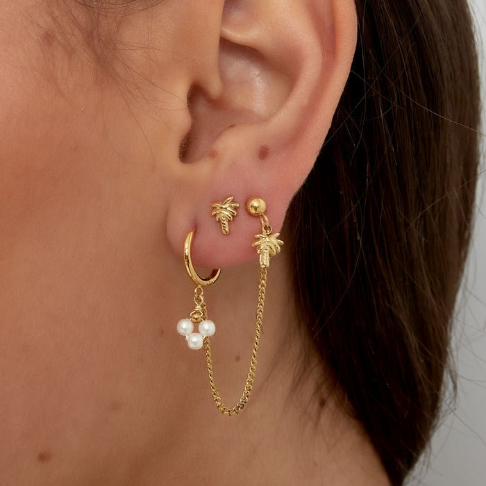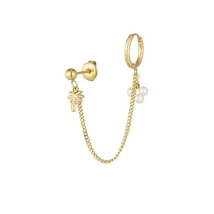 Pendiente de Perla de Palmera Individual Color Dorado - Acero Inoxidable