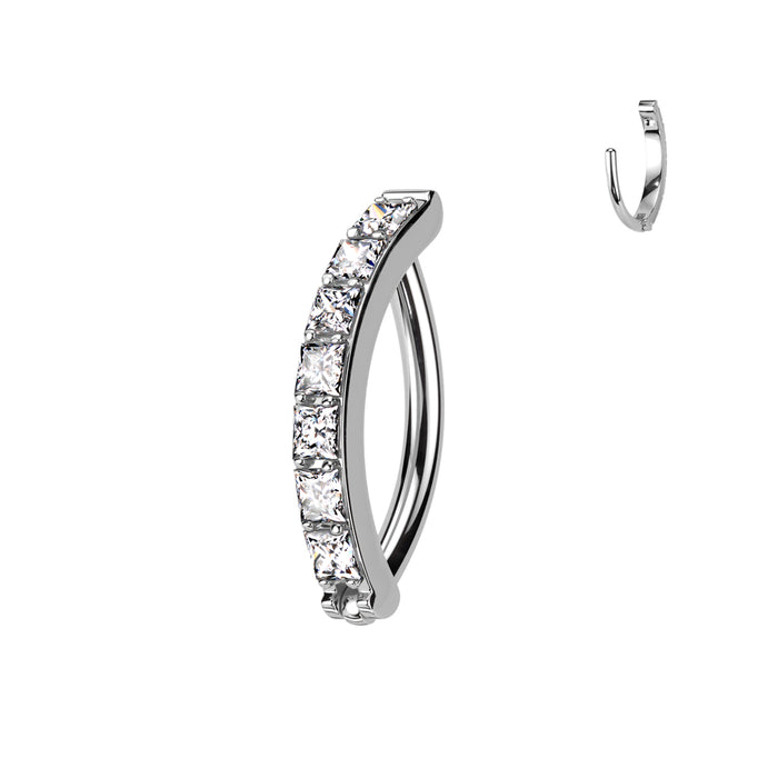 Anillo Click Ovalado Zirconia Color Plata - Titanio