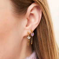 Pendientes Collar Flor Rosa - Acero Inoxidable