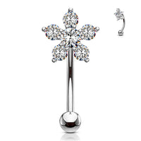 Piercing de barra curva con forma de flor, color plata - Acero quirúrgico