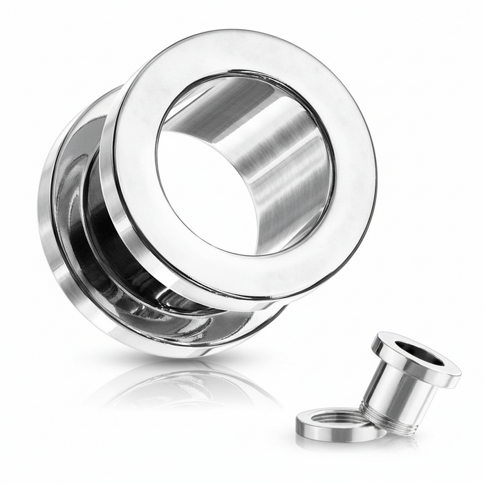 Túnel de doble acampanado con tornillo dorado – Acero quirúrgico