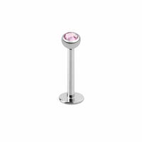 Labret van zilverkleurig chirurgisch met een roze kristal.