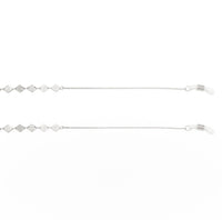 Dit zilverkleurige brillenkoord met ruitpatroon is een stijlvolle en praktische accessoire voor je bril of zonnebril. Het elegante ontwerp zorgt ervoor dat je je bril altijd bij de hand hebt, terwijl het koord een subtiele, moderne uitstraling geeft. Geschikt voor dagelijks gebruik en eenvoudig te combineren met elke outfit.