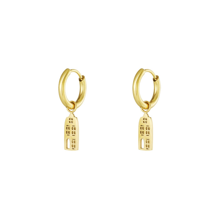 Oorbellen Grachten Huisje Goudkleurig - Stainless Steel